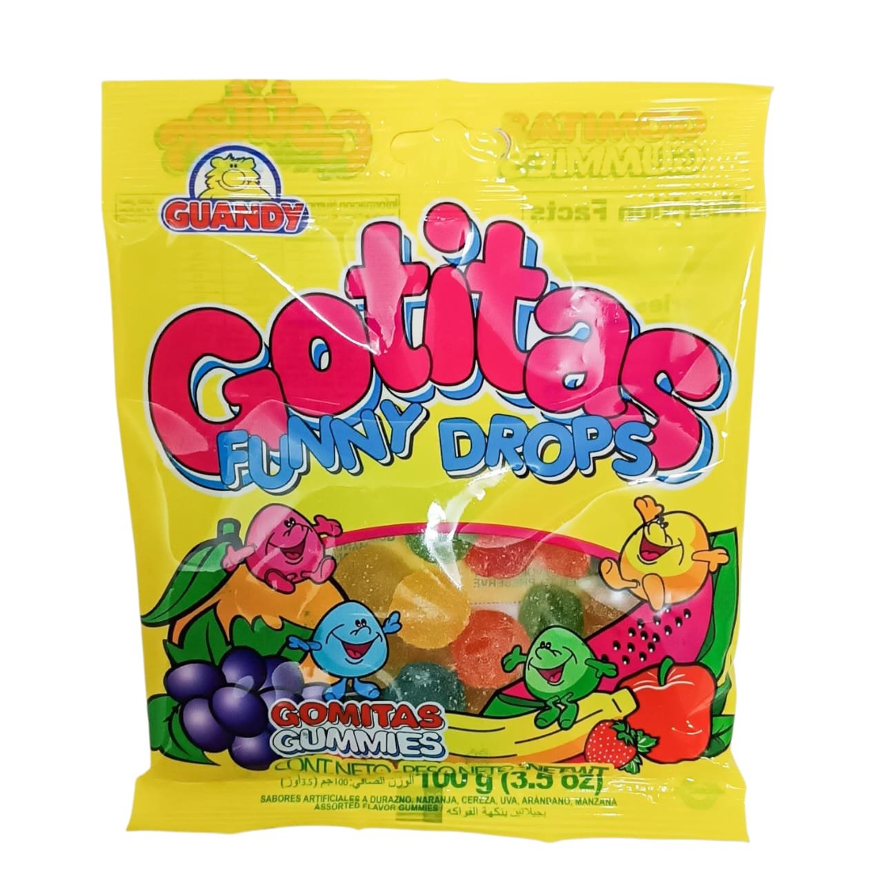 Dulces, suaves y llenos de ternura. Los caramelos de goma Guandy en forma de gotitas ofrecen una textura agradable y un sabor frutal que encanta a grandes y chicos. Origen: Guatemala.