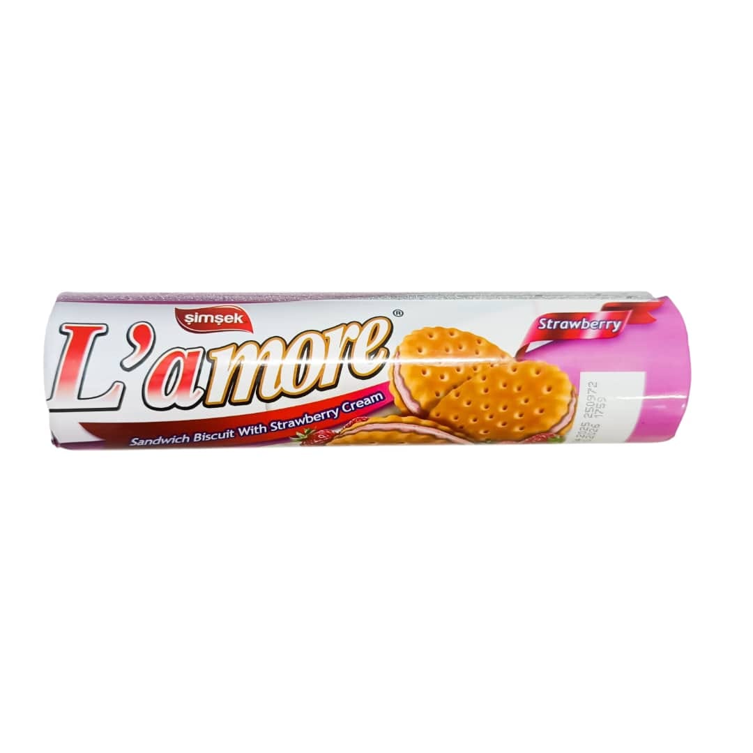Galletas sándwich con crema sabor fresa L’amore Simsek 150 g