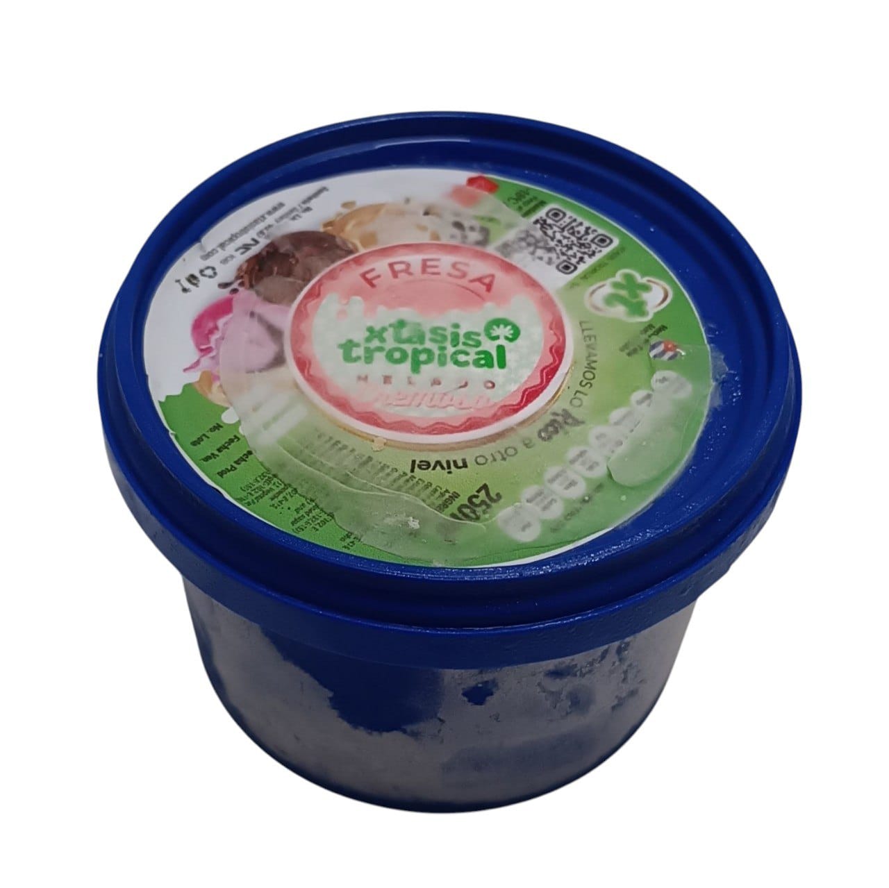 El helado de fresa XTASIS TROPICAL de 250ml es un alimento producido por el congelamiento de una mezcla pasteurizada compuesta por una combinación de ingredientes lácteos pudiendo contener leche, azúcar refina, saborizantes, emulsionantes , estabilizantes, grasas, sal , agua y aire. contiene esencia de vainilla. Origen: Cuba.