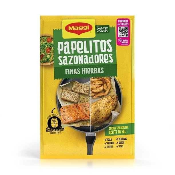 Hojas sazonadoras Maggi Jugoso al Sartén finas hierbas 1 sobre con 4 pzas