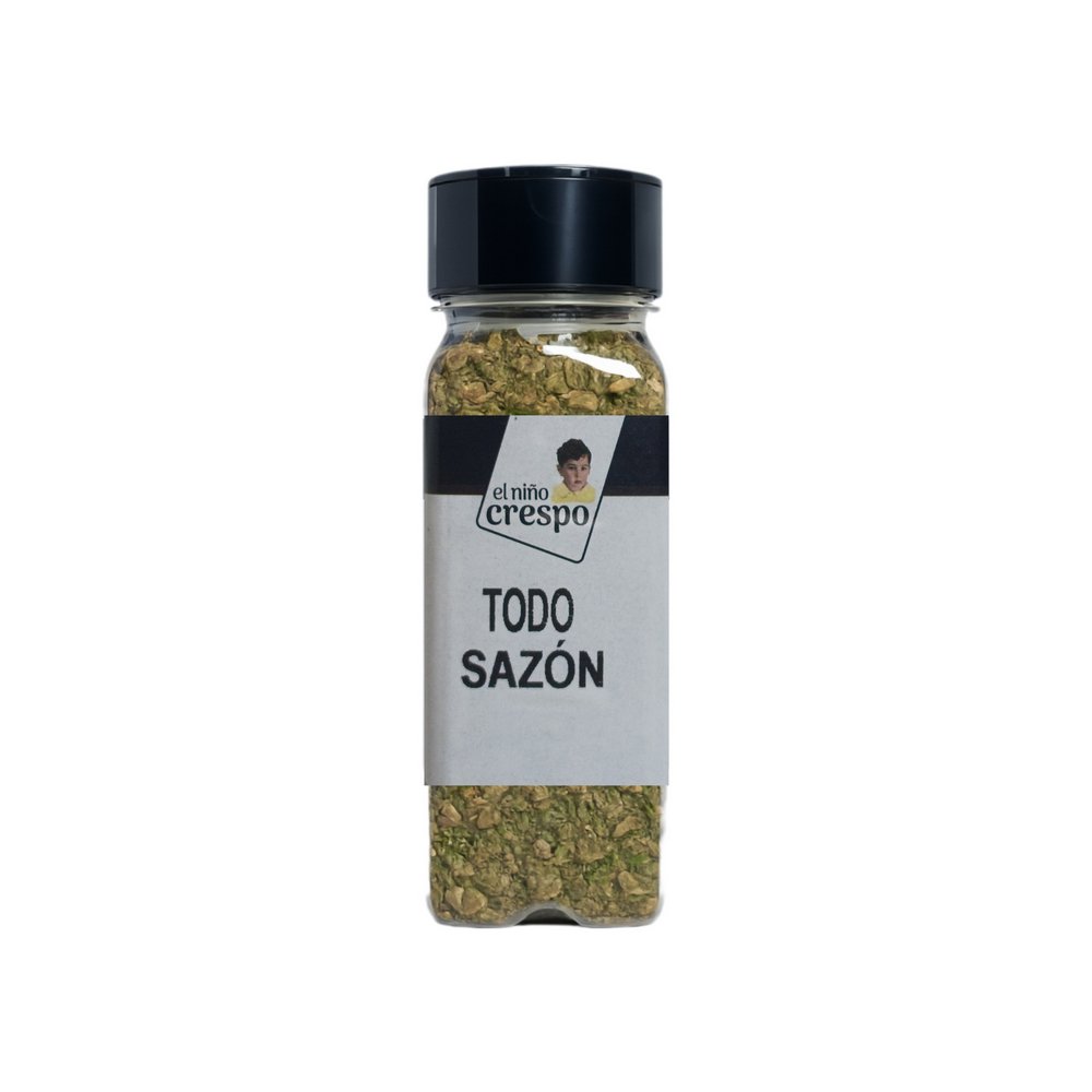 Todo Sazón El Niño Crespo es el aliado perfecto para darle un toque auténtico y delicioso a tus recetas. Con su combinación balanceada de especias, aporta aroma y sabor sin necesidad de añadir otros condimentos, y usar en cualquier preparación: carnes, sopas, arroces y guisos. Origen: España