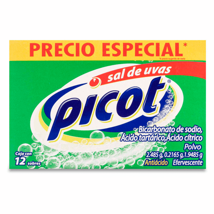 Sal de Uvas Picot Bicarbonato de Sodio / Acido Tartarico / Acido Citricopolvo Efervescente 12 Sobres